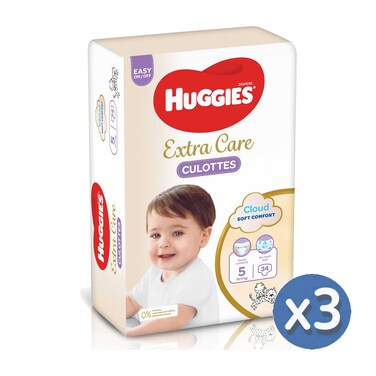 Huggies Extra Care Soft Cloud Culottes Baby Diaper Pants Size 5 12-17kg 34 Pants Pack of 3