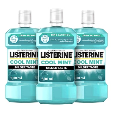Listerine Mouthwash Cool Mint Milder Taste, Long Lasting, 500ml Pack of 3
