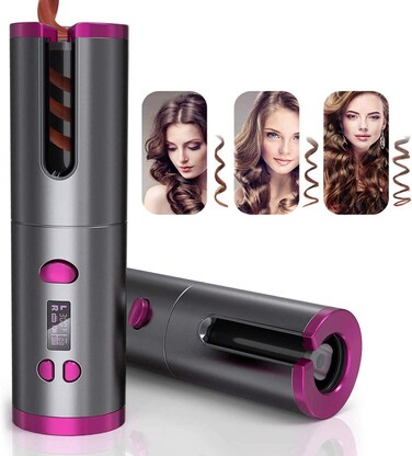 NuSense Cord-Free Portable Electric Hair L/R Rotating Curler, Wireless Automatic Curling Iron with 6 Kinds of Temperature Control, Full Anti-Scalding, Curls or Waves