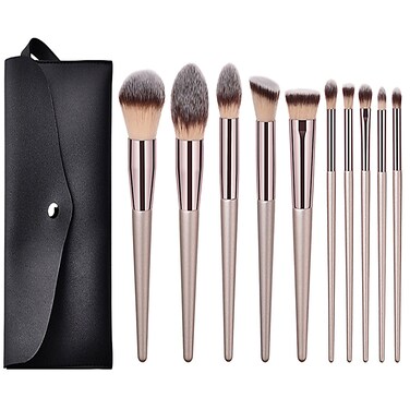 Deo King Makeup Brush Set With Pu Makeup Brush Bag Champagne Gold - 10-Piece