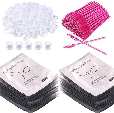 Generic 3X100Pcs Under Eye Pads Lint Free Lash Extension Gel Patches, Eyelash Mascara Brushes Wands Applicator Makeup Brush,Nail Art Tattoo Glue Rings Holder Beauty Tools