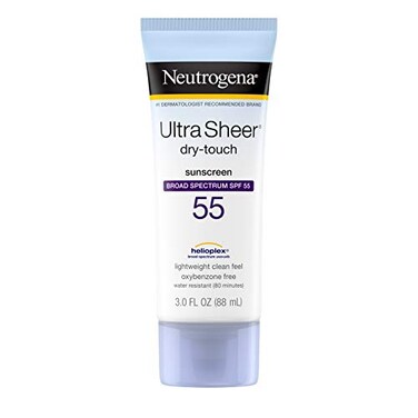 Product Description Get powerful sun protection without the heavy finish with Neutrogena Ultra Sheer Dry-Touch Sunscreen. This lightweight Broad Spectrum SPF 55 sunscreen lotion with Dry-Touch technology absorbs fast for a clean, ultra-light feel and non-shiny finish. This oxybenzone-free sunscreen is formulated with Helioplex Technology, which offers superior broad spectrum protection from aging UVA rays and burning UVB rays. Fast-absorbing, lightweight and water-resistant, this non-greasy sunscreen lotion formula is non-comedogenic and PABA-free. Apply prior to sun exposure to keep skin protected during outdoor activities like gardening, biking, hiking, boating or going on a walk. Brand Story By