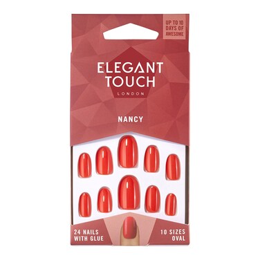 Elegant Touch Oval Shaped False Nails Nancy Red 24 count