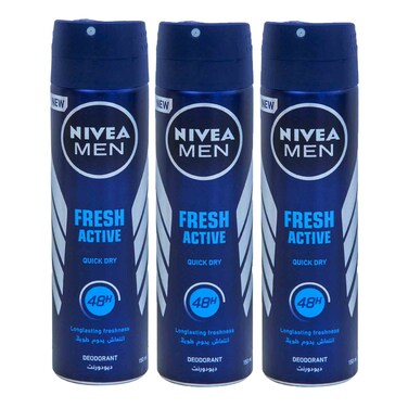 NIVEA MEN Antiperspirant Spray for Men Fresh Active Fresh Scent 150ml Pack of 3