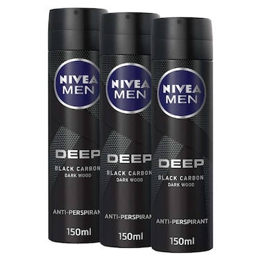 NIVEA MEN Antiperspirant Spray for Men Deep Black Carbon Antibacterial Dark Wood Scent 150ml