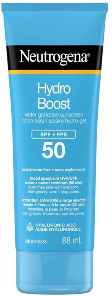 Neutrogena hydro boost water gel lotion sunscreen SPF 50 88 ml is a moisturizing face sunscreen with hyaluronic acid