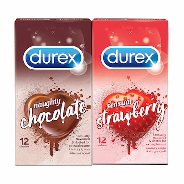 Durex Condoms Strawberry Multicolour 12 count With Chocolate Condoms Multicolour 12 count