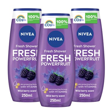 NIVEA Shower Gel Body Wash Fresh Powerfruit Blueberry Scent 250ml Pack of 3