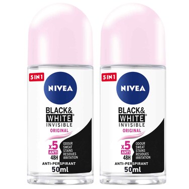 NIVEA Antiperspirant Roll-on for Women Black & White Invisible Original 50ml Pack of 2