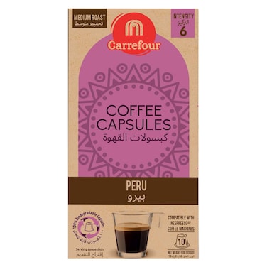 Carrefour Peru Medium Roast Intensity 6 Coffee 10 Capsules