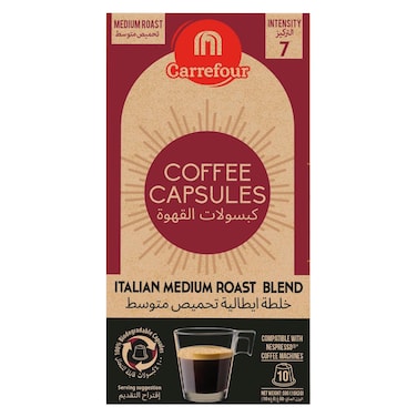 Carrefour Italian Medium Roast Blend Intensity 7 Coffee 10 Capsules