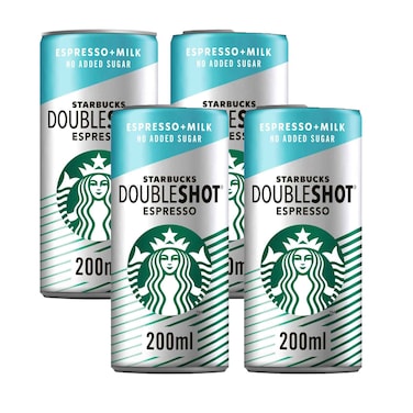 Starbucks No Added Sugar Doubleshot Espresso Arabica Coffee Drink, 200ml Pack of 4