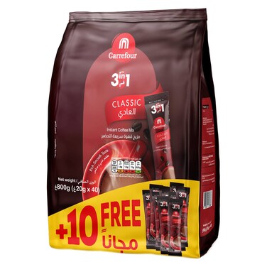 Carrefour 3-In-1 Classic Instant Coffee Mix 20g Pack of 30