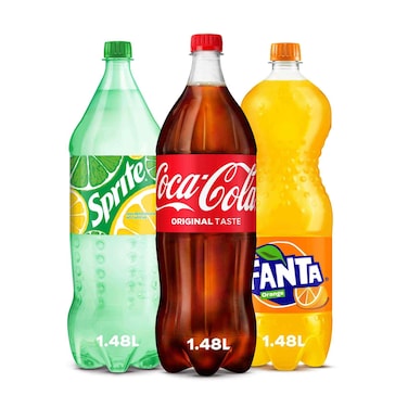 Coca Cola Original Taste Carbonated Soft Drink 1.48L With Sprite Carbonated Soft Drink 1.48L And Fanta Orange Carbonated Soft Drink 1.48L