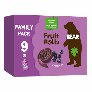 Bear Blackcurrant Flavour Fruit Rolls Snacks, 20g Pack of 9