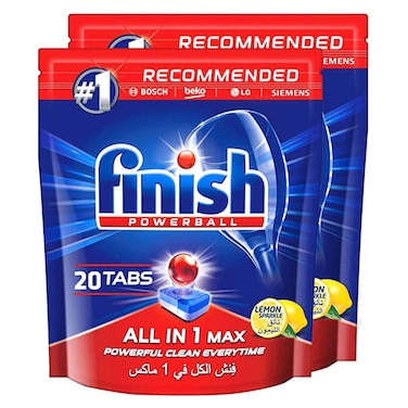 Finish Powerball All-In-1 Max Lemon Dishwasher 20 Tablets Red Pack of 2
