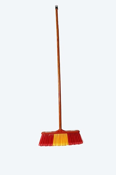 LONG HANDLE BROOM - The handle screw together and go into the angle broom head giving a complete soft bristle push broom for cleaning and sweeping your floor.