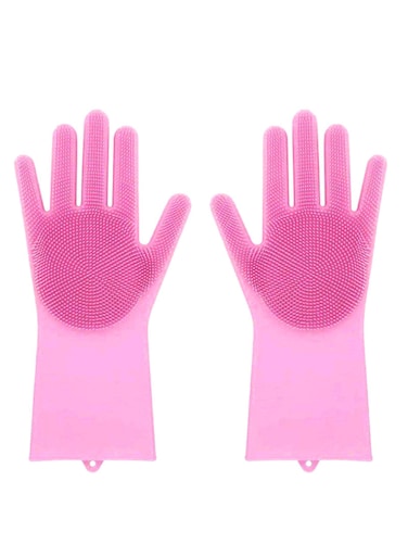 Generic Reusable Silicone Washing Gloves Pink