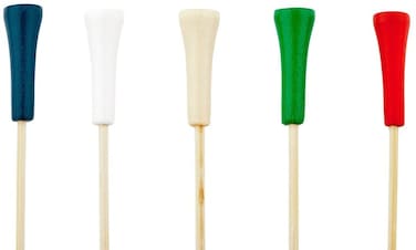 Make sure your presentation is a hole-in-one with our Golf Tee Picks! Perfect for country clubs, golf courses, and sports enthusiasts, these unique cocktail picks feature multi-colored golf tee accents. Measuring 4 inches long, you can use these versatile bamboo picks to effortlessly enhance your cocktail garnishes or to stylishly serve your hors d'oeuvres. These durable party skewers are made from strong premium bamboo, so you can quickly spear olives and cherries -- or easily stab mini meatballs and poached shrimp. These multi-colored golf tee picks will arrive in a 1000 count box.