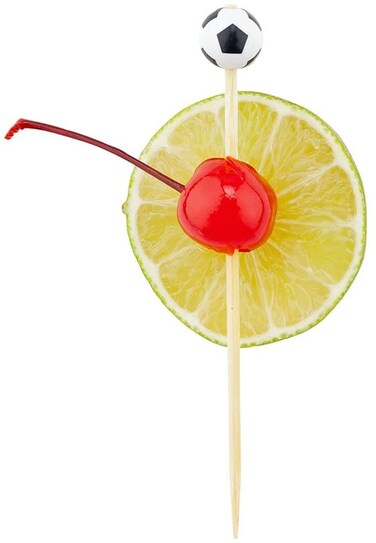 UNIQUE, STYLISH ACCENTS: These bamboo picks feature a playful soccer ball decoration designed to grab your customer's attention and effortlessly enhance your presentation.