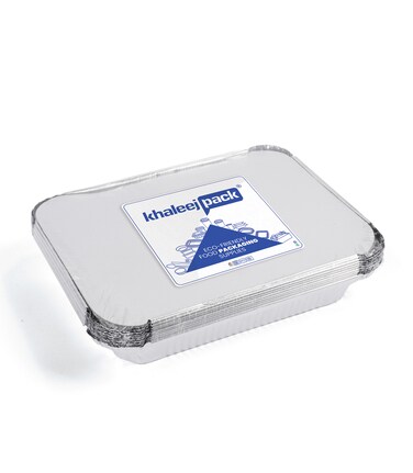 Khaleej Pack [10 Pcs] Aluminium Container 1200cc Silver With Lid For Food Storage & Takeaway
