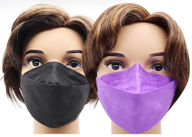 Comfortable breathing and excellent ventilation throug melt blown filter. 3D Mask design enables easy breathing, talking, smooth nose support design prevents side down and condensation. N95 Face Mask Purple And Black Combo Pack 10 Pieces Each Color. 4 Layer Protection