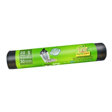 Home Care 30 Gallon Anti-Bacterial Extra Strong Garbage Bag S Black Pack of 20