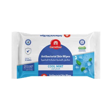 Carrefour Antibacterial Skin Wipes Cool Mint White 10 Wipes