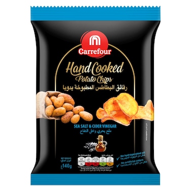 Carrefour Hand Cooked Potato Chips With Sea Salt And Cider Vinegar 140g