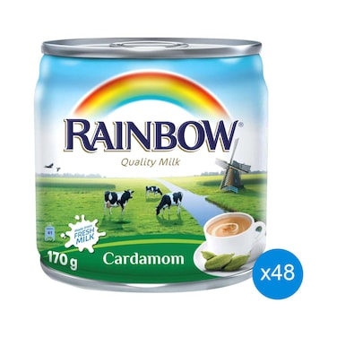 Rainbow Evaporated Milk With Cardamom 170g Pack of 48
