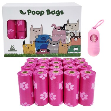 Doreen 300pcs Pet Dog Cat Waste Poop Bags PBAT Degradable Biodegradable Supplies Pick up Bag Portable Pet Poop Garbage Bag (20 Rolls pink GC1799A)