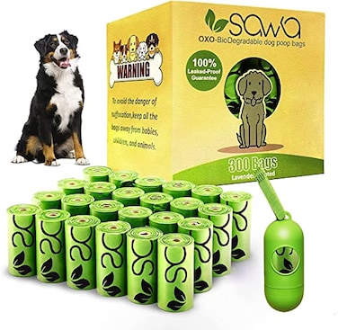 Dog Poop Bags Lavender Scented with Dispenser 20 Rolls 300 Packs of Thick Poo Bags and Leash Clip for Doggy Cat Puppy Large Biodegradable leak Proof Eco- Friendly Dog Waste Bags, Pet Dog Supplies