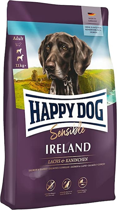 Happy Dog Supreme Sensible Ireland Adult Dog Dry Food has a unique offering for any little gourmet who is looking for something special, is very sensitive or just rather picky. The extraordinarily tasty super-premium complete food Mini Ireland produced with delicate salmon and tasty rabbit. Contains carefully-selected components (no lamb or poultry protein, no rice, soy or wheat). Made with a particularly gentle production method and specially adapted protein and energy content. The Mini Ireland dog food is also excellent for the careful feeding of sensitive small-breed dogs with their special needs. The croquettes are perfectly adapted for the teeth of medium and larger-breed dogs.