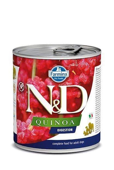 A complete diet food made from lamb and quinoa that does not contain cereals and is suitable for adult dogs with digestive problems.