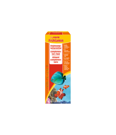 Extra vitamins for more liveliness sera Fishtamin is the complementary food consisting of a carefully manufactured emulsified multivitamin concentrate for all fish in fresh and marine water It effectively and safely adds all essential vitamins to the diet It closes possible supply gaps and prevents deficiencies when simply dripped onto the food or added to the water Disease resistance health and liveliness of the fish are enhanced Application during stress situations in case of a disease for juvenile animals and for supporting breeding is particularly useful Swimming zone
