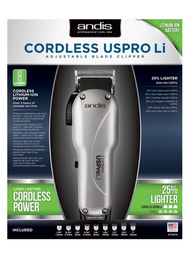 Andis Cordless Us-Pro Li Adjustable Blade Clipper With Blades Black