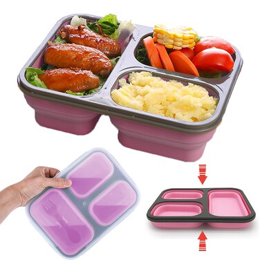 3-Compartments: You will get a silicone lunch boxes with a reusable spork utensil. Practical lunch box has a 3 compartments, separate different foods, perfect for pasta, rice, salad, chicken and sandwich combination.