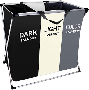 U-Hoome Foldable Laundry Hamper Basket Sorter With Handle And Aluminum Frame, 3 Sections