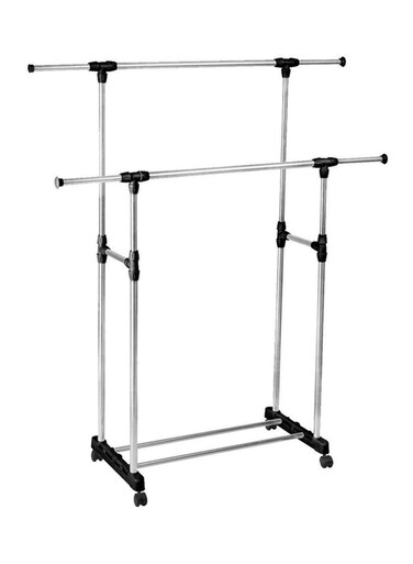Clothes Double Pole Portable Rack Silver/Black Medium