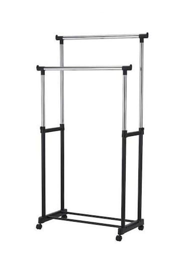 Generic Cloth Rack 2 Pole, Metal Black Double Pole Telescopic Clothes Hanger Black