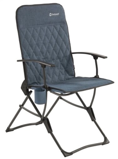 OUTWELL DRAYCOTE Reference: 5709388104977 Condition: New product SPECIFICATION: Fabric: Two-tone, 100% polyester Frame: Powder coated steel Size: 58 x 75 x 103 cm (WxDxH) Max load: 120 kg Seat Height: 47 cm Colour: Blue Pack size: 58 x 10 x 65 cm Weight: 6 kg