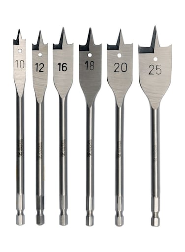 6-Piece Flat Wood Drill Bit Set Silver
