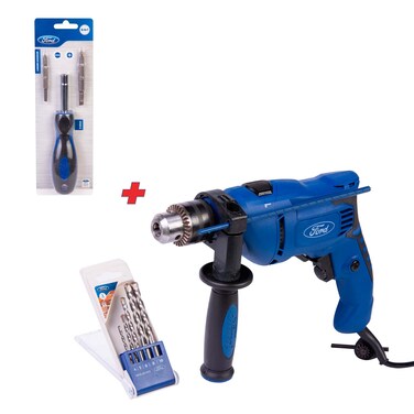 Ford Impact Drill 600W And 5 Bit And 6 In 1 Screw Driver Multicolour
