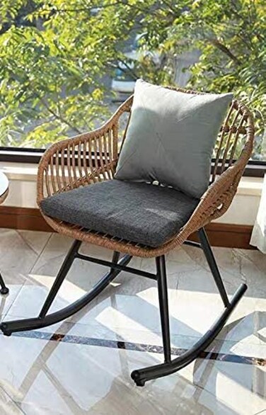 YULAN- Outdoor Rocking Chair Rattan Patio Yard Furniture All-weather With Cushions, YL16-332