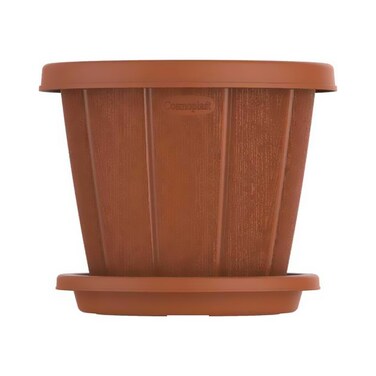 Cosmoplast Woodgrain Flower Pot With Tray Brown 6inch