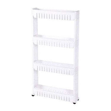 Amerteer - 4-Tier Slim Slide Storage Tower Rack Shelf With Wheel White 102X55X15Centimeter, 4-Tier Corner Shelf For Kitchen, Bedroom, Bathroom, Pantry, Office