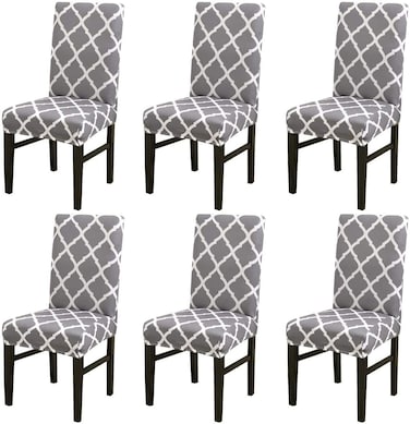Newlifes 6 Pcs Stretch Dining Chair Covers High Back Chair Protective Cover Slipcover (Gray+White)