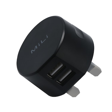 MiLi Ranger Stylish USB Charger UK-Plug USB 2 Port 12W, 5V-2.4A,Main Charger for iphone X/Xs/11/8/7/6, ipad, Samsung Galaxy Note 8/S9/S10/S7/S6, LG, HTC, Powerbank, Tablet [Travel Friendly] - Black