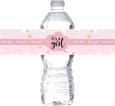 Monmon & Craft Pink It's A Girl Water Bottle Stickers/Gender Reveal Wrappers/Baby Shower Girl's Birthday Party Labels Supplies (Set Of 32)