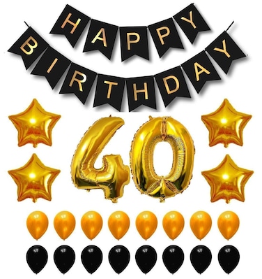 Party Time 23-Pieces Decoration Set of Black Happy Birthday Banner, Foil Balloon and Black & Gold Latex Balloons For 40th Birthday Party Decoration - Party Supplies